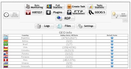 Países como Perú y México han sido los primeros en implementar recursos delictivos del tipo crimeware desarrollados para automatizar la tarea de recolección de información sensible de los usuarios bancarizados de toda América Latina. Sumándose Brasil, durante el 2011, con crimeware de similares características que no sólo son concebidas para controlar equipos infectados sino que también están pensadas para facilitar a los delincuentes digitales el “proceso de búsqueda y filtrado” de toda la información robada.